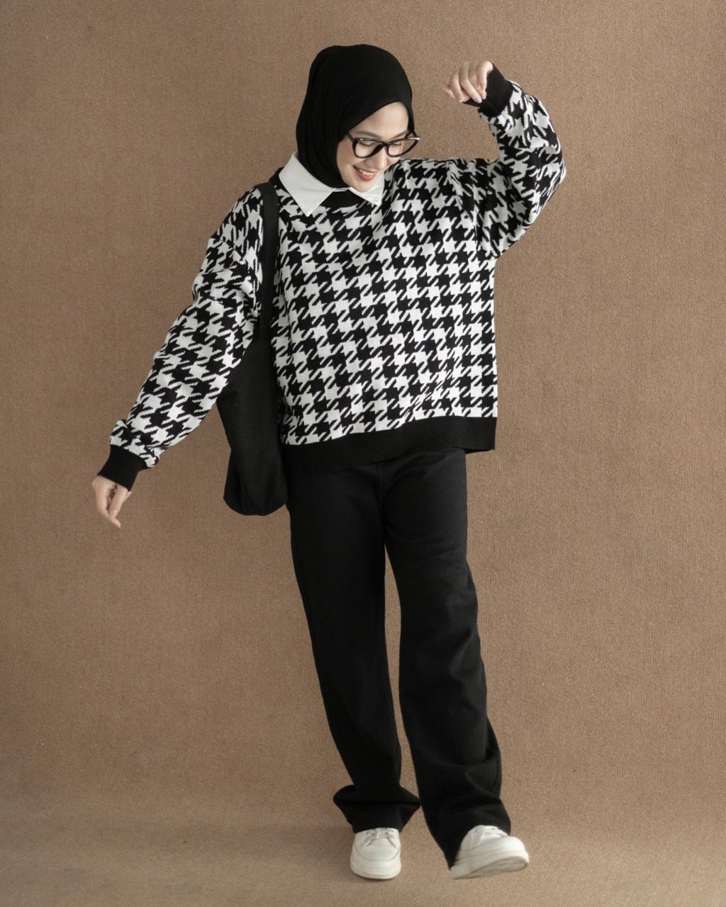 Houndstooth Sweater Black