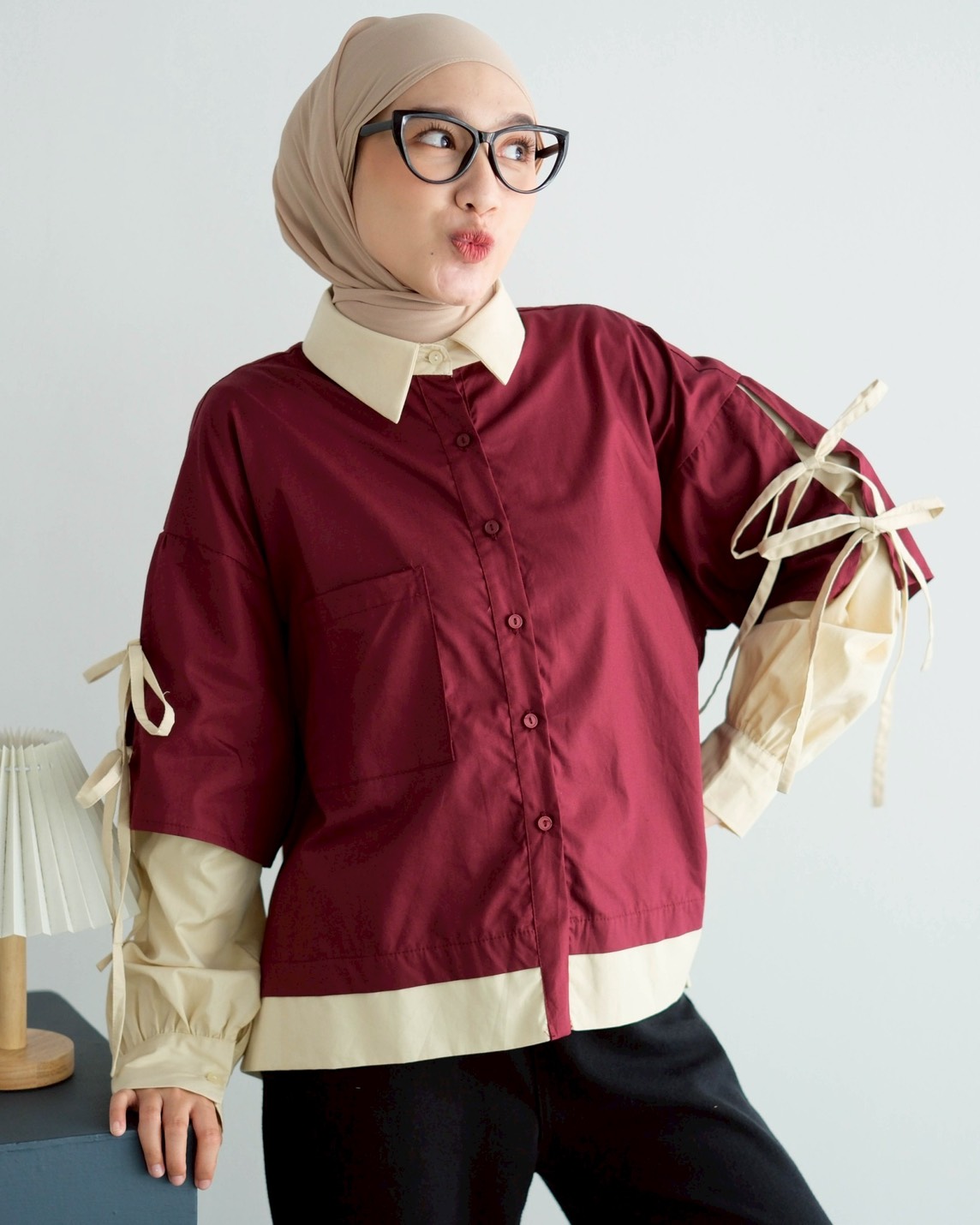 Jinju Shirt Kode 20289 Maroon-Cream