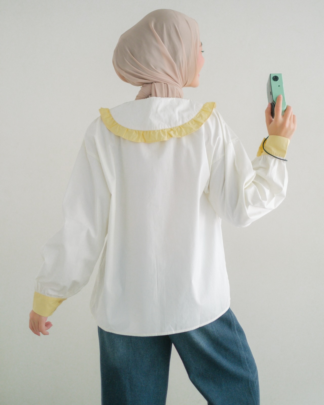 Audre Shirt Kode 1408 Broken White-Yellow